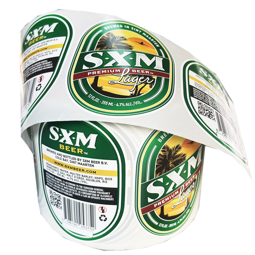 Sint Maartenin asiakkaat räätälöivät nämä juomaetikettitarrat, ja asiakkaan vaatimukset ovat seuraavat: