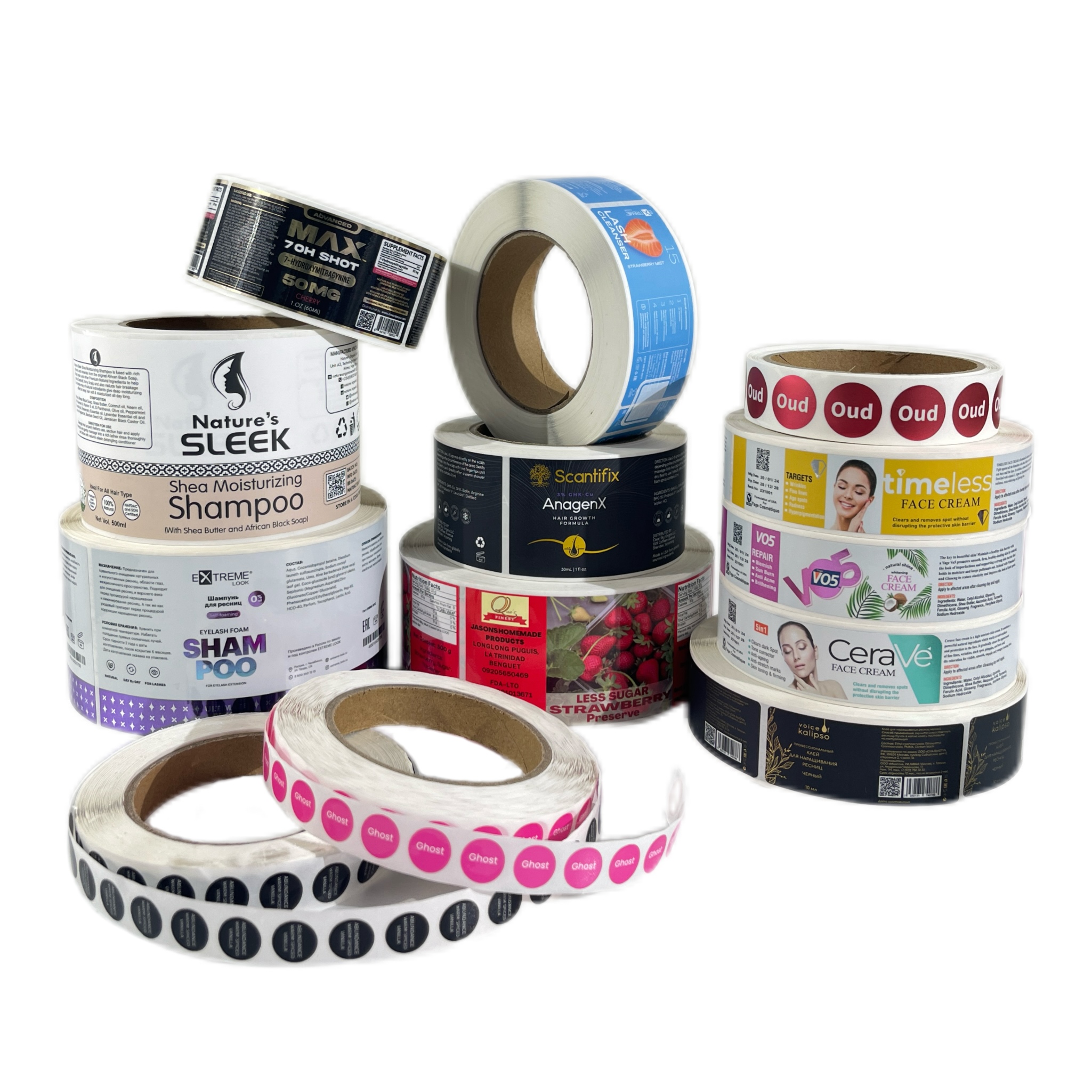 Produktene og etikettene designet av selskapet vårt er vist på bildet. Du kan velge materialet du ønsker, for eksempel vanntett syntetisk papir, ikke vanntett kobberpapir, gjennomsiktig, vinetikettpapir og så videre. Vi aksepterer også varmstempling, preging og delvis UV-teknologi. Hvis du har noen behov, kan du gjerne kontakte oss. Vi tilbyr rabatter for store kvanta