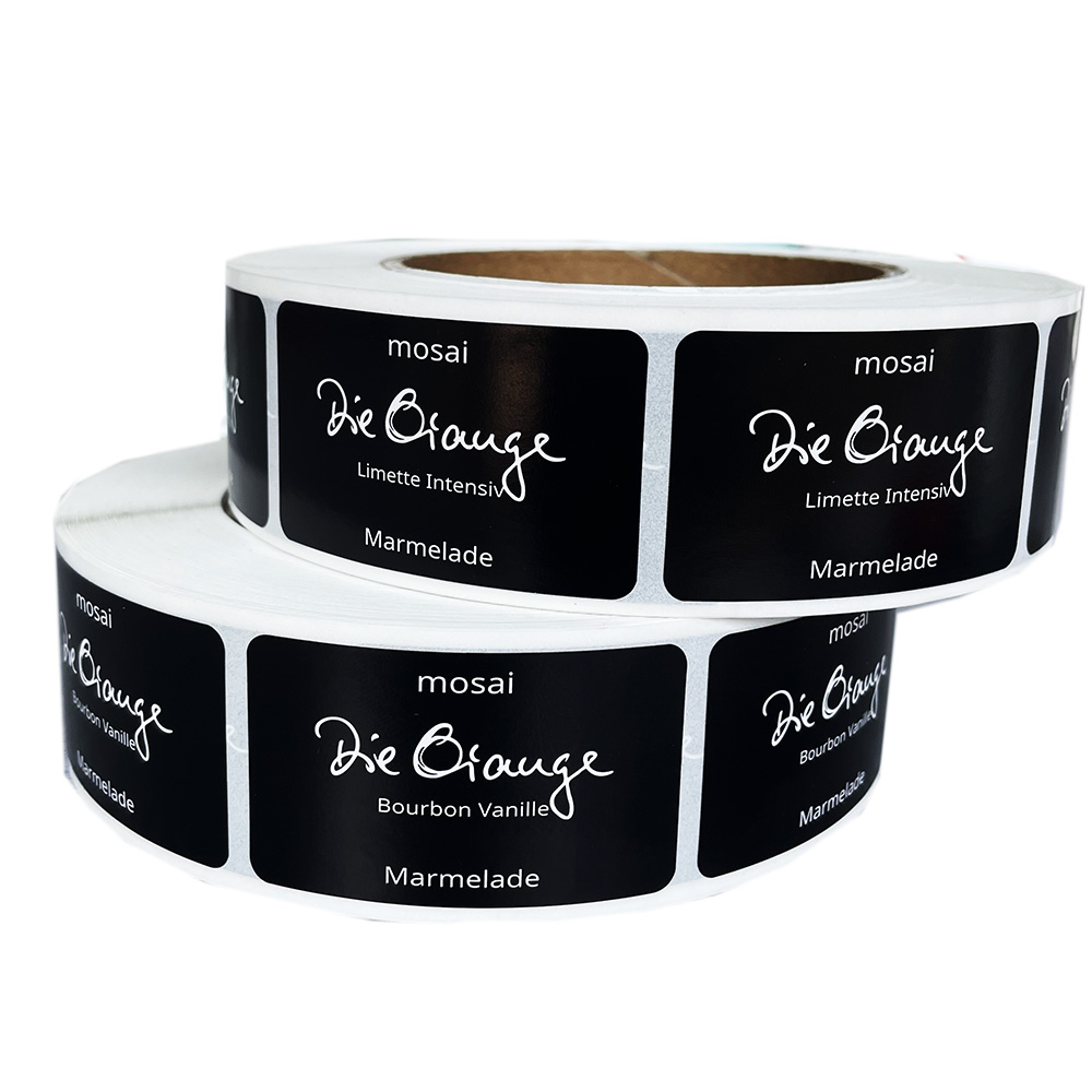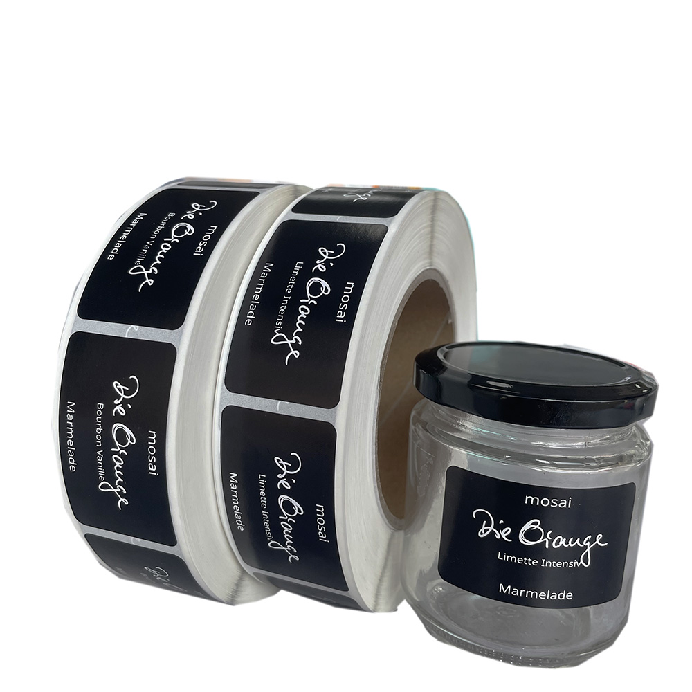 The material used is relatively economical copperplate paper, which is cheap but not waterproof. You can order according to your own needs. If you want slight waterproofing, you can use a glossy or matte film on top to achieve slight waterproofing. This German customer uses it to stick on 250ml jam jars.