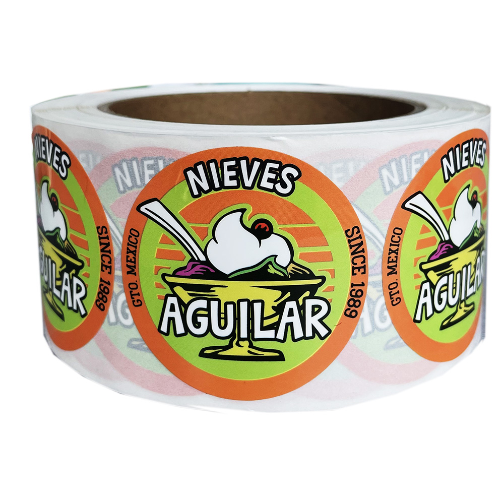 Nesta pequena etiqueta adesiva, informações ricas são transmitidas de forma inteligente. A palavra 'Nieves' indica claramente que o produto está relacionado a sorvete, enquanto 'AGUILAR' é o nome da marca, que opera no México desde 1989. A mensagem 'SINCE 1989' transmite a longa história e a profunda herança da marca, permitindo que os consumidores sintam a confiabilidade e a estabilidade da marca e aumentem sua confiança no produto.